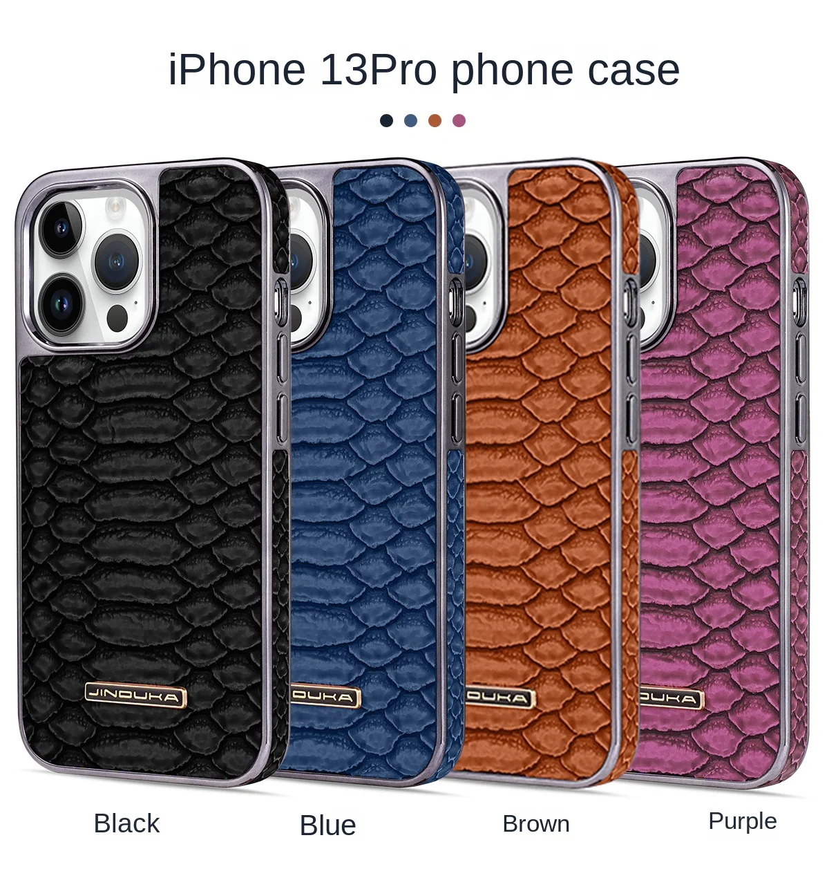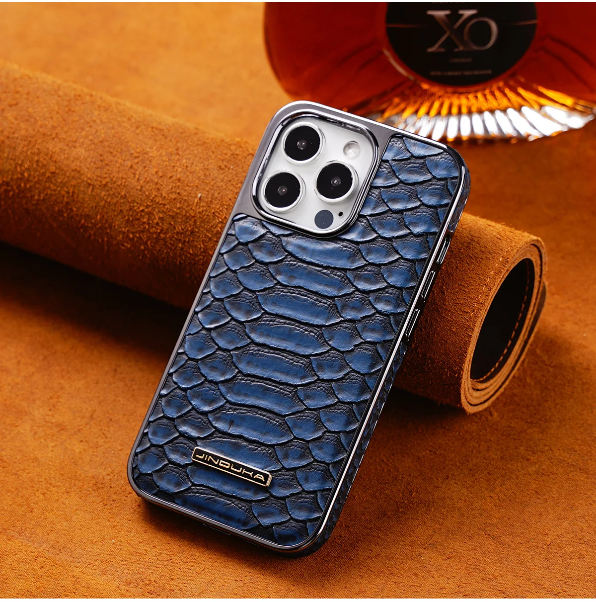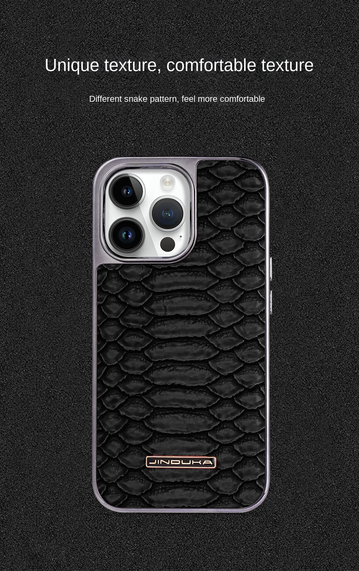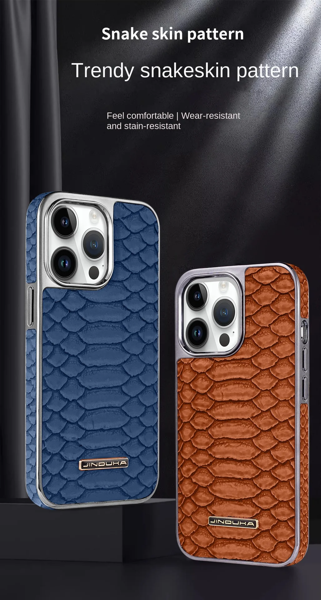 Luxury Python Texture Leather Electroplating Phone Case For iPhone 16 15 14 Plus 13 12 Pro Max Back Cover with Built-in Flannel