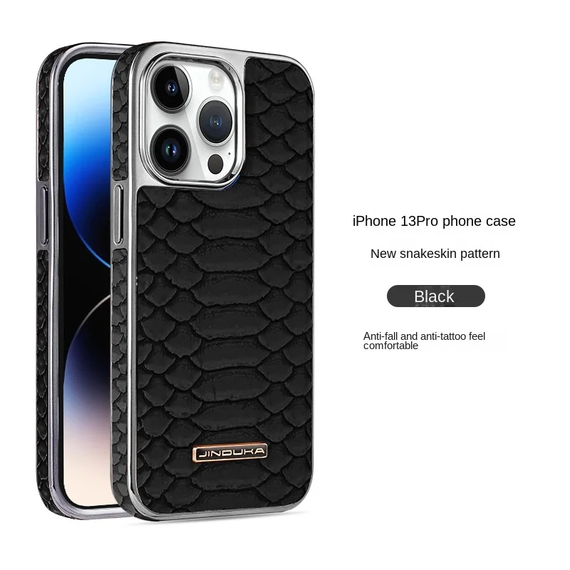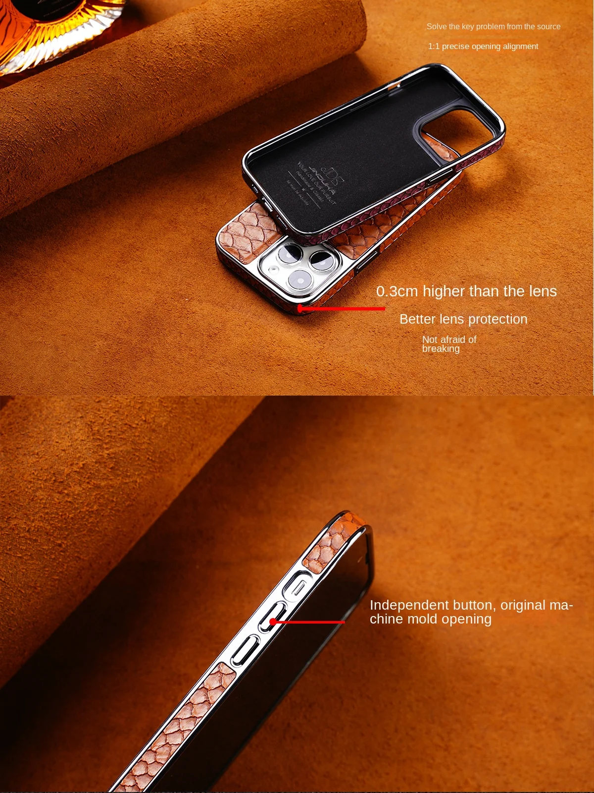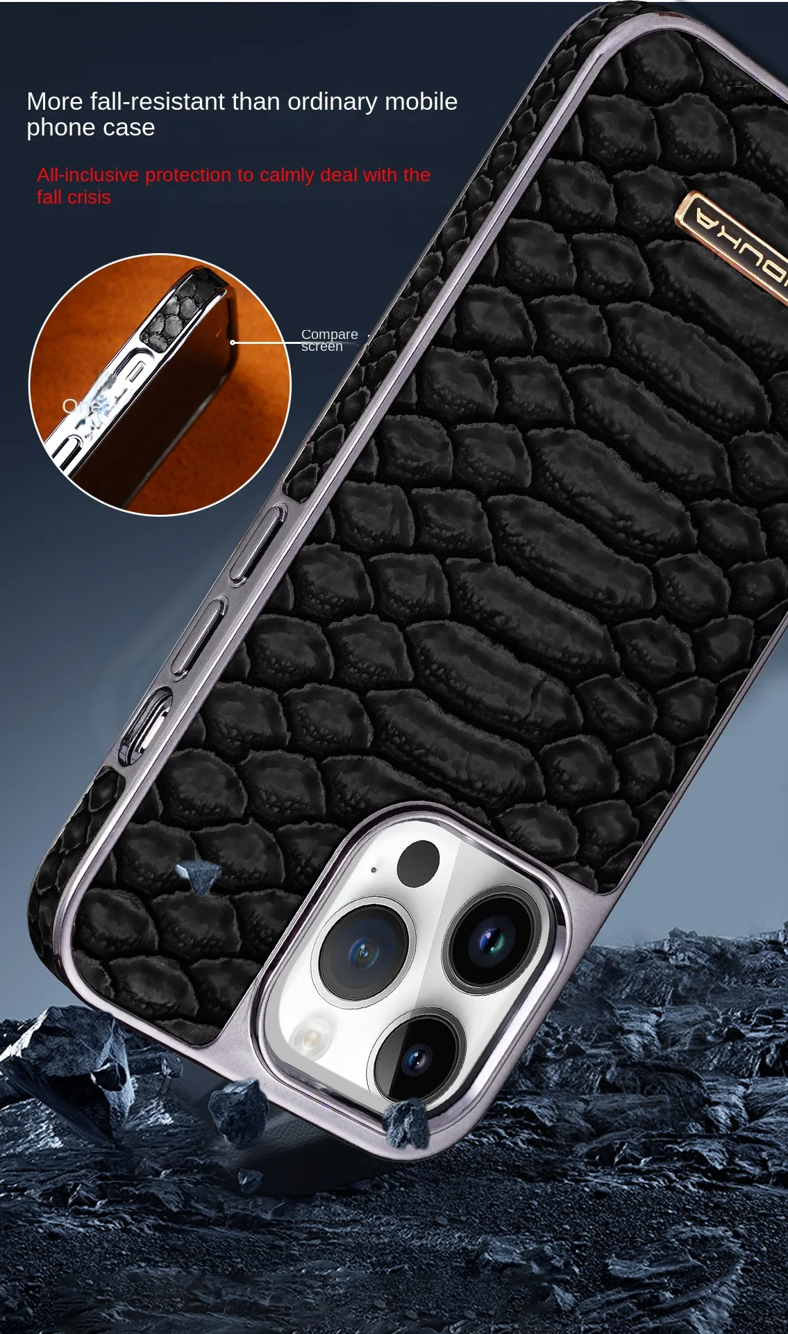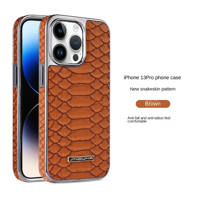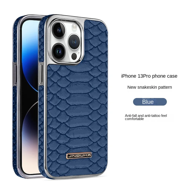 Luxury Python Texture Leather Electroplating Phone Case For iPhone 16 15 14 Plus 13 12 Pro Max Back Cover with Built-in Flannel